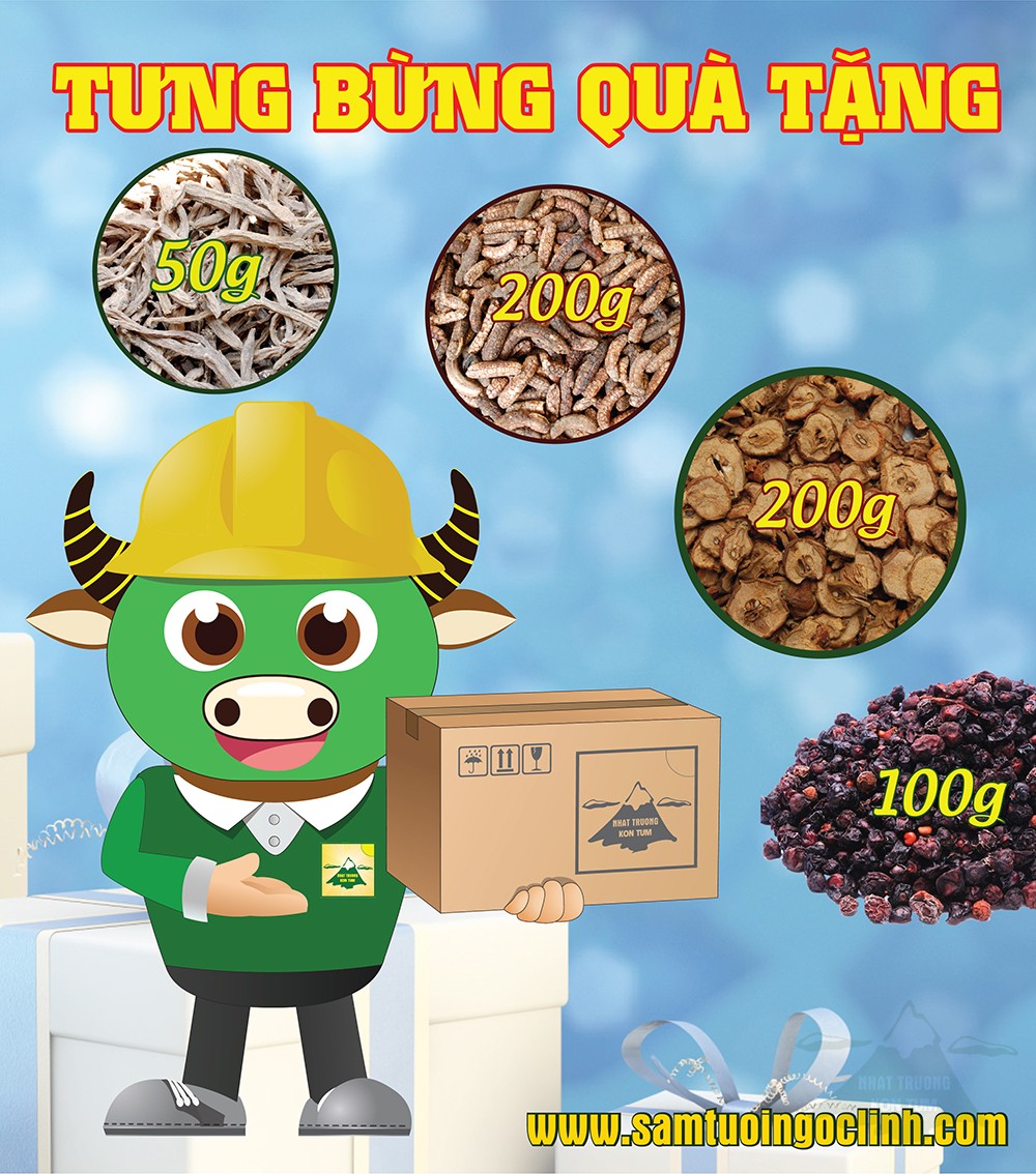 Từ ngày 02/09/2016 chúng tôi triển khai chương trình quà tặng, khi mua những sản phẩm Sâm Dây Kon Tum, Chuối hột rừng Kon Tum, Táo mèo Kon Tum, Ngũ Vị Tử Ngọc Linh Kon Tum sẽ được chọn những gói đi kèm, tùy quý khách lựa chọn. Trong đó có 50g Sâm Dây Kon Tum, 200g Chuối Hột Rừng, 200g Táo Mèo, 100g Ngũ Vị Tử để có thể uống nước hoặc ngâm rượu chung. Ngoài ra Quý Khách có thể lựa chọn 30g 2 loại Tiêu Rừng mà chúng tôi đang cung cấp. Một loại có mùi sả và mùi chanh, dùng cho những bữa tiệc nướng, thơm phức và hấp dẫn.